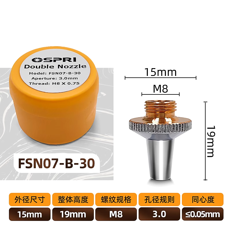 Ospri Оригинальные насадки для лазерной режущей головкиСозданы в соответствии с высочайшими стандартами точности и долговечности. Эти форсунки, разработанные для эффективной резки и высокой производительности, построены с использованиемИмпортные медные материалы, Обеспечивая высокую проводимость и долговечность. ПродвинутыйНемецкое мастерствоГарантирует, что эти форсунки идеально подходят для высокоскоростной резки, что делает их идеальными для промышленного использования.