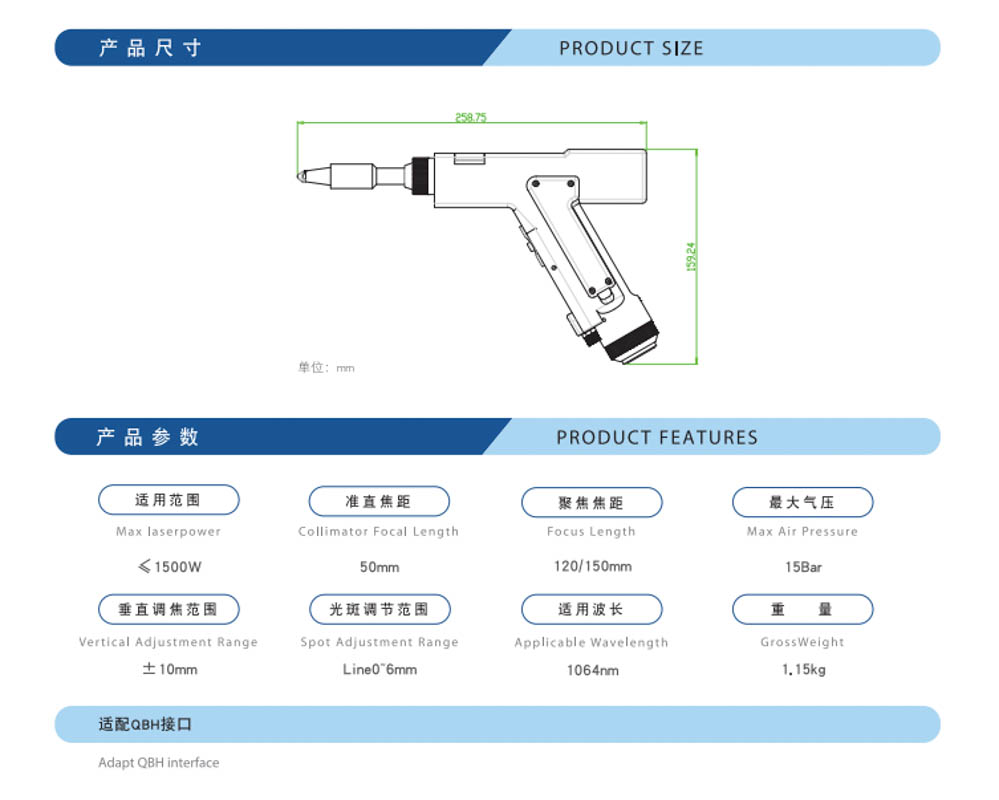 4. Эффективный и удобный в использовании: фокусирующая линза и защитная линза имеют конструкцию выдвижного типа, что упрощает замену. Коллимирующая линза интегрирована с QBH для легкой замены на месте.